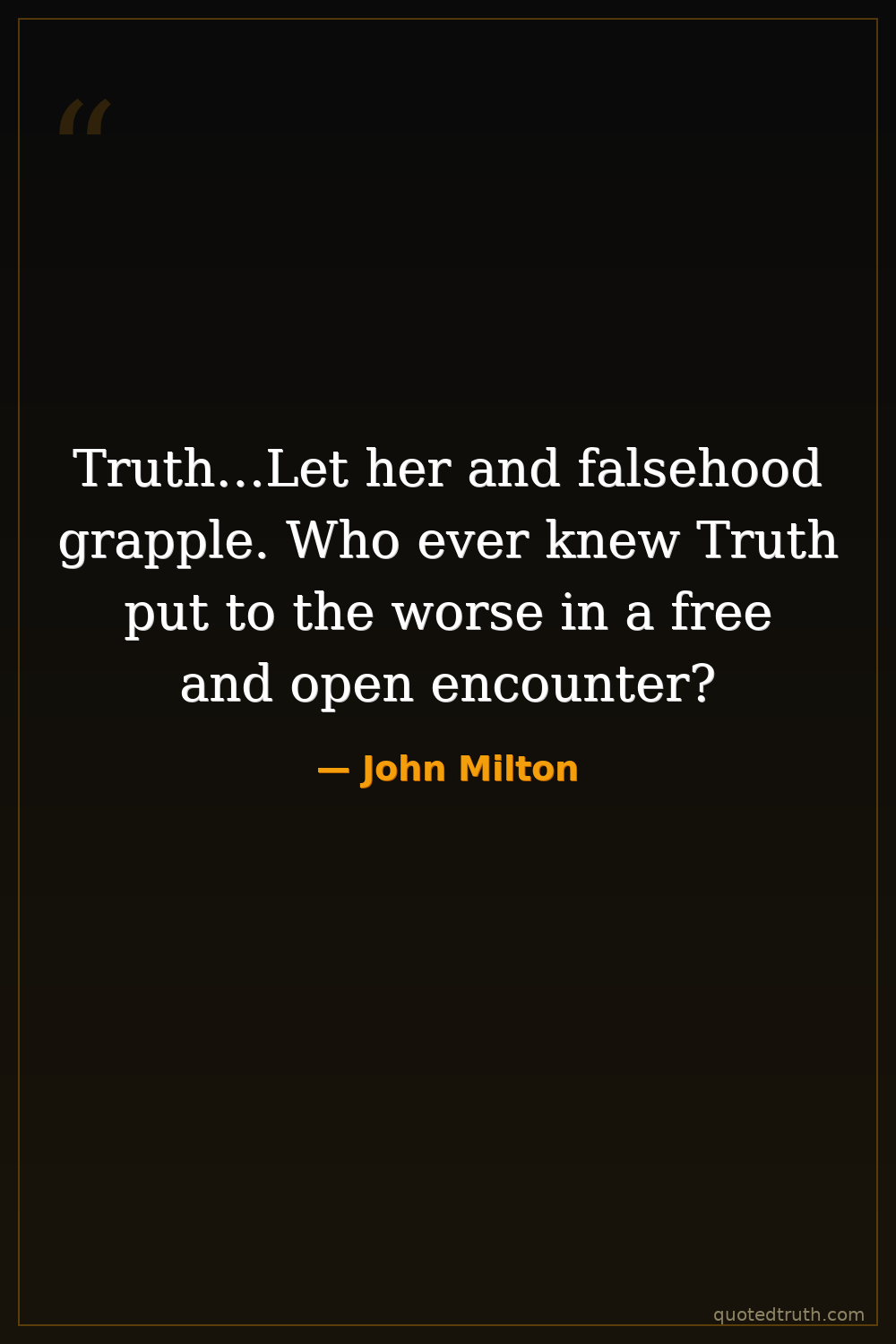Truth…Let her and falsehood grapple. Who ever knew Truth put to the worse in a free and open encounter?