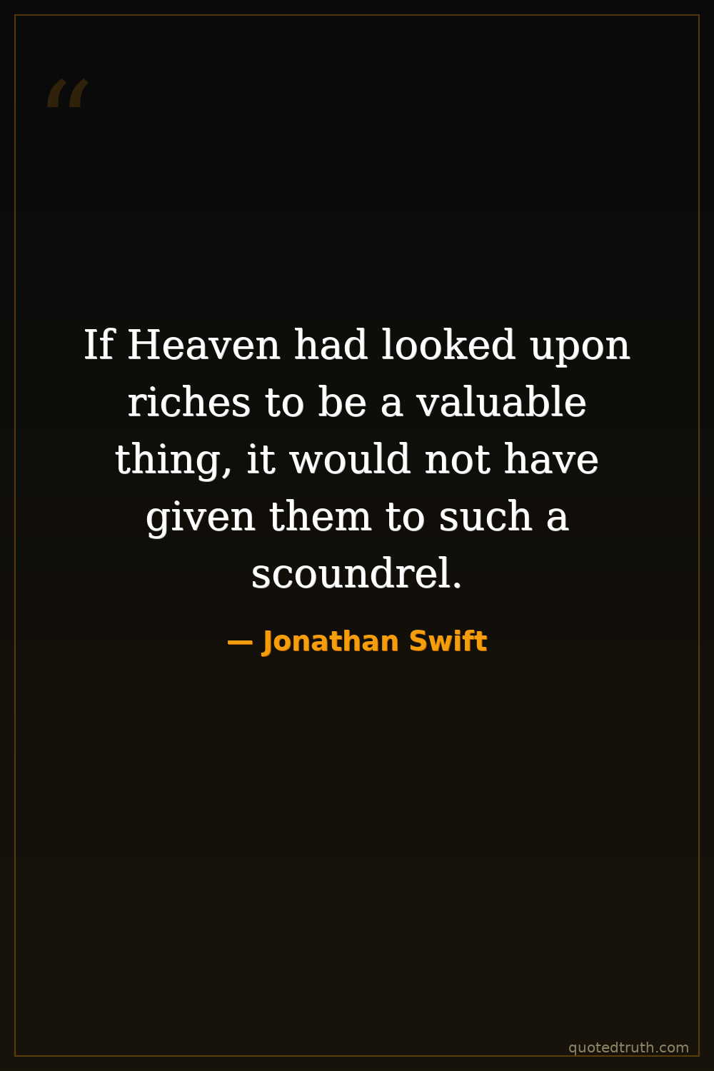 If Heaven had looked upon riches to be a valuable thing, it would not have given them to such a scoundrel.