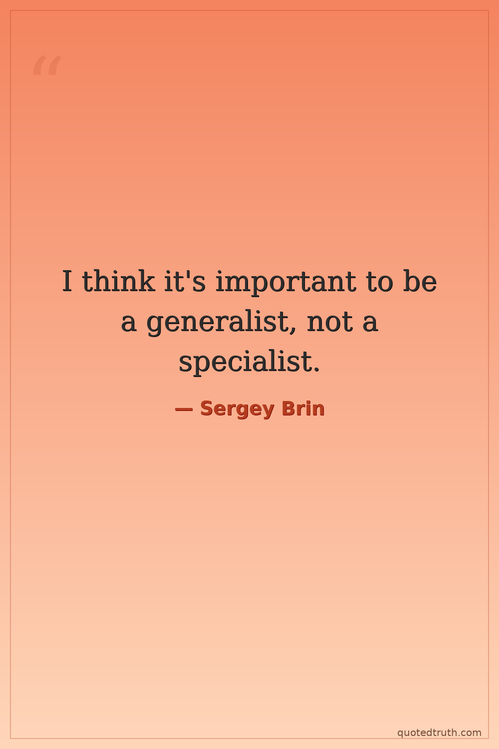 I think it's important to be a generalist, not a specialist.