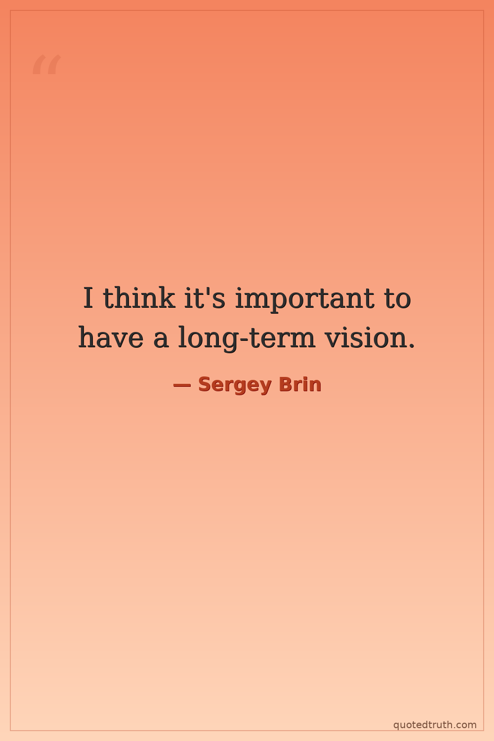 I think it's important to have a long-term vision.