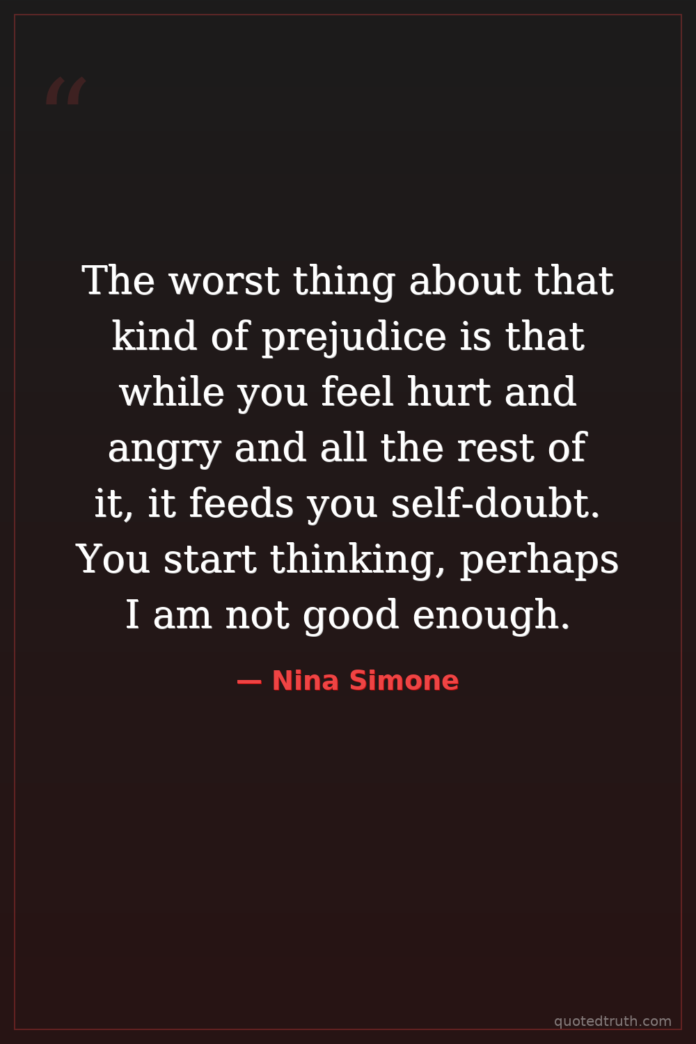 The worst thing about that kind of prejudice is that while you feel hurt and angry and all the rest of it, it feeds you self-doubt. You start thinking, perhaps I am not good enough.