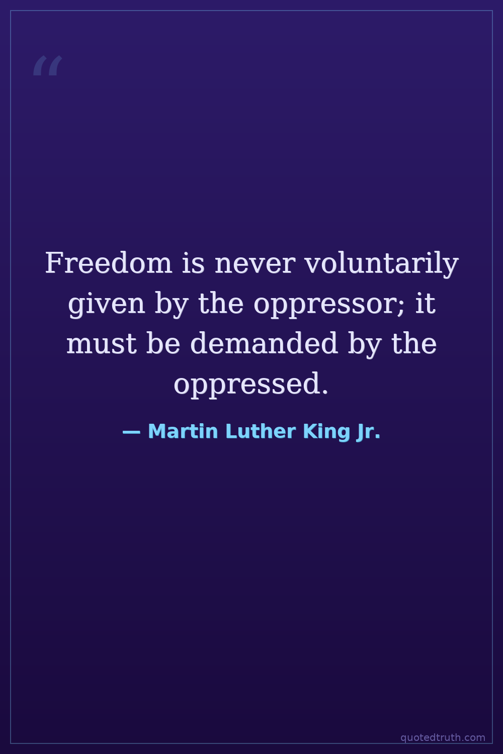 Freedom is never voluntarily given by the oppressor; it must be demanded by the oppressed.