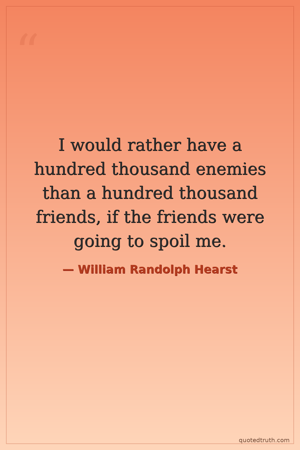 I would rather have a hundred thousand enemies than a hundred thousand friends, if the friends were going to spoil me.