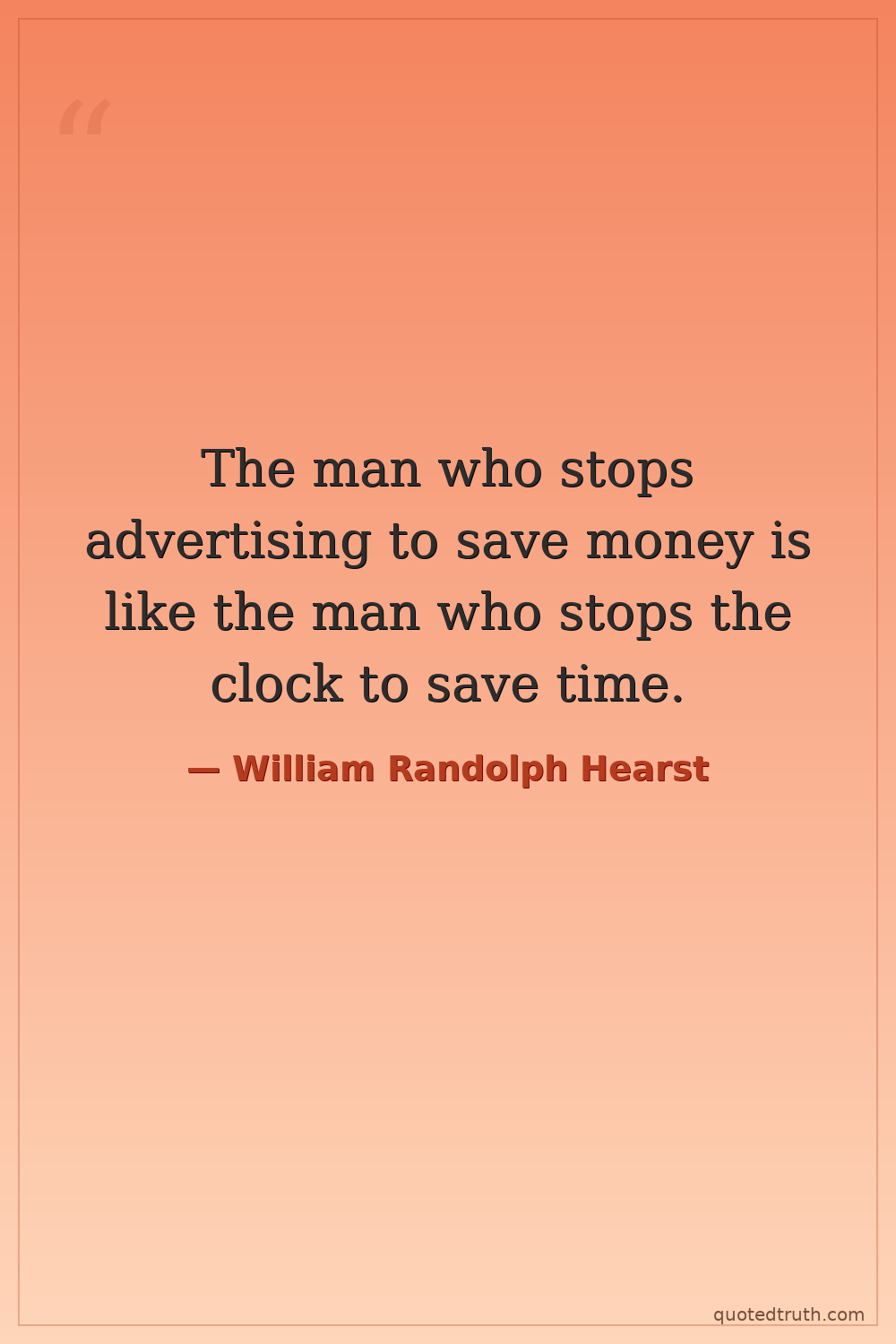 The man who stops advertising to save money is like the man who stops the clock to save time.