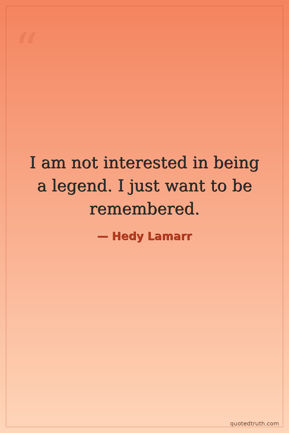 I am not interested in being a legend. I just want to be remembered.