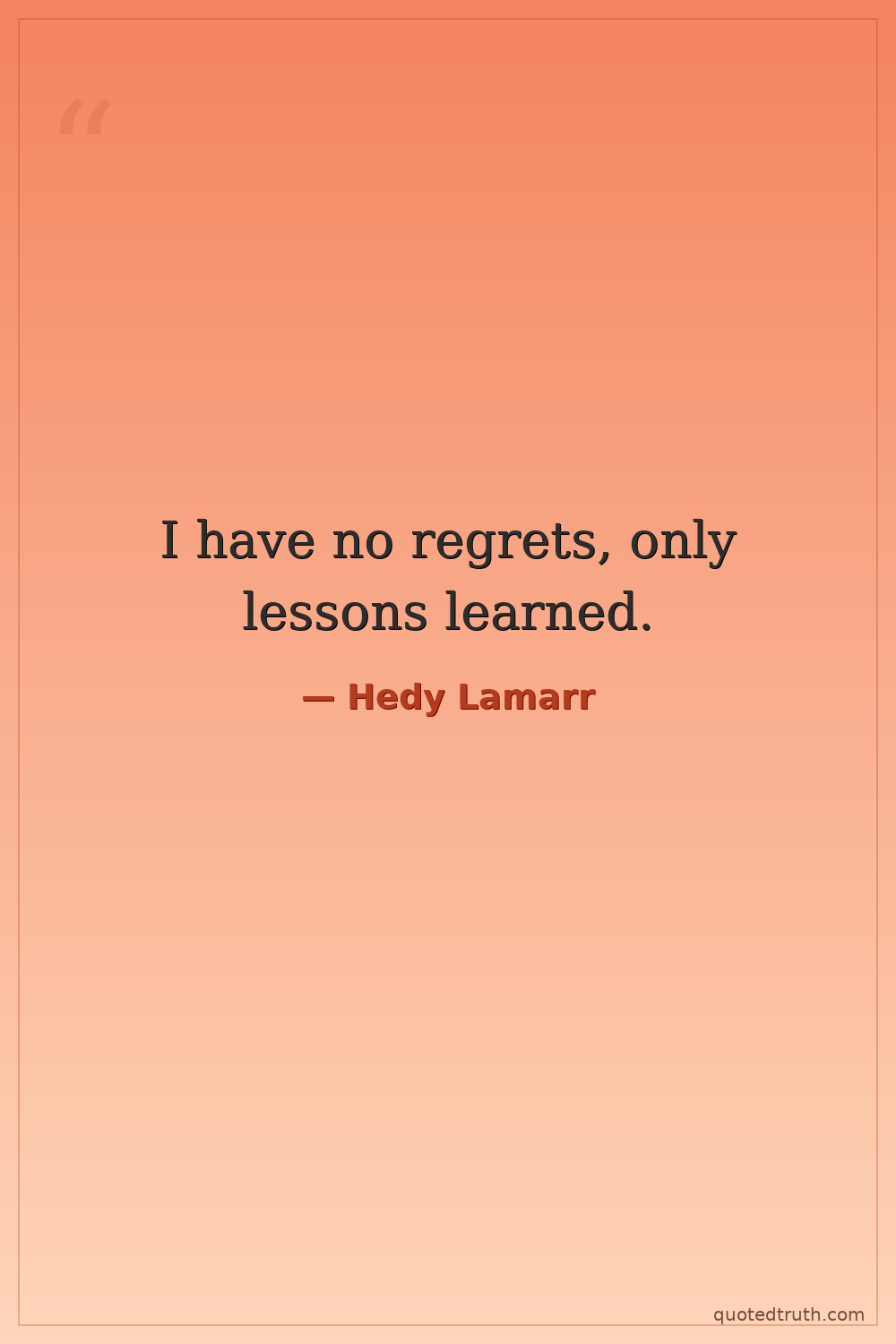 I have no regrets, only lessons learned.