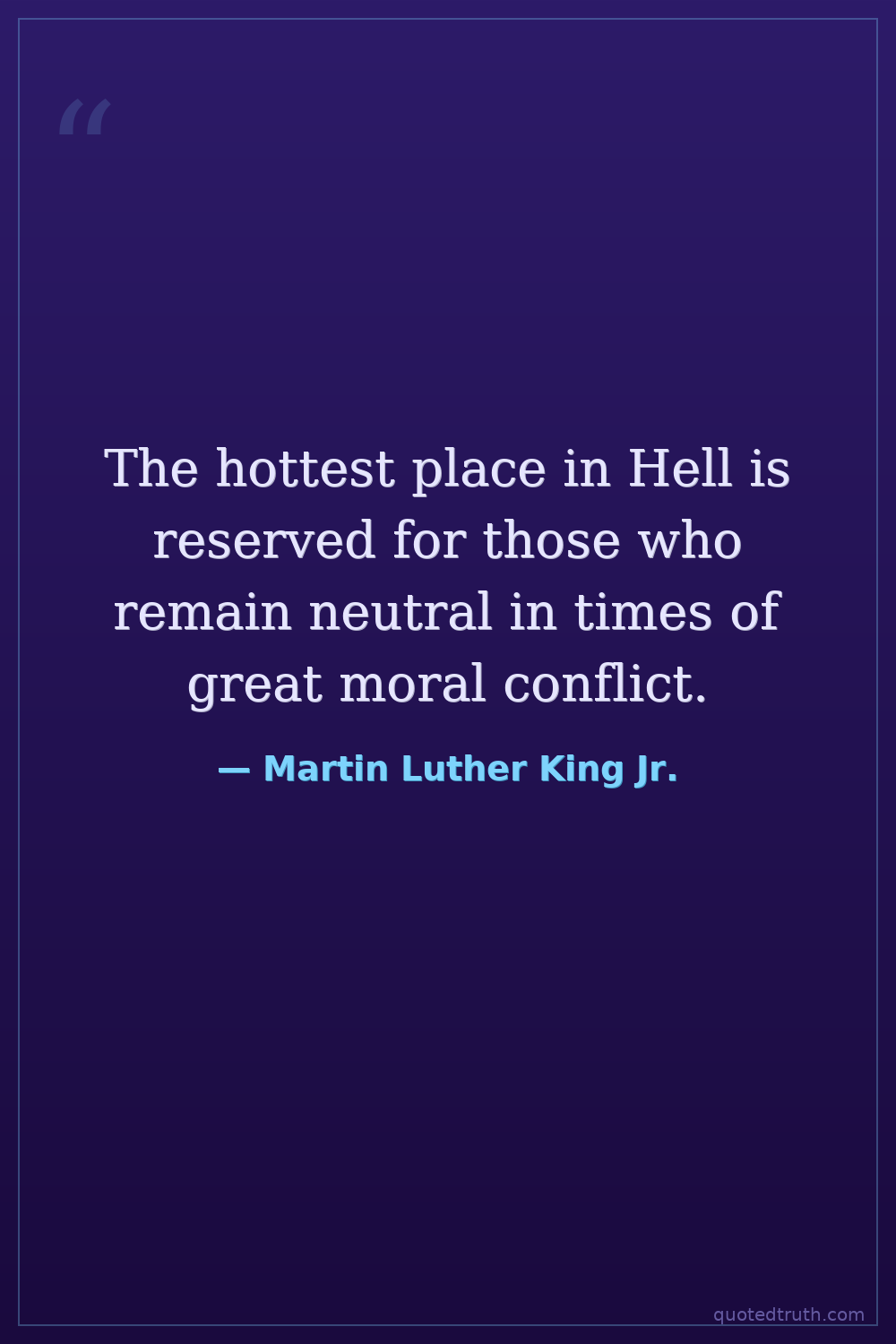 The hottest place in Hell is reserved for those who remain neutral in times of great moral conflict.