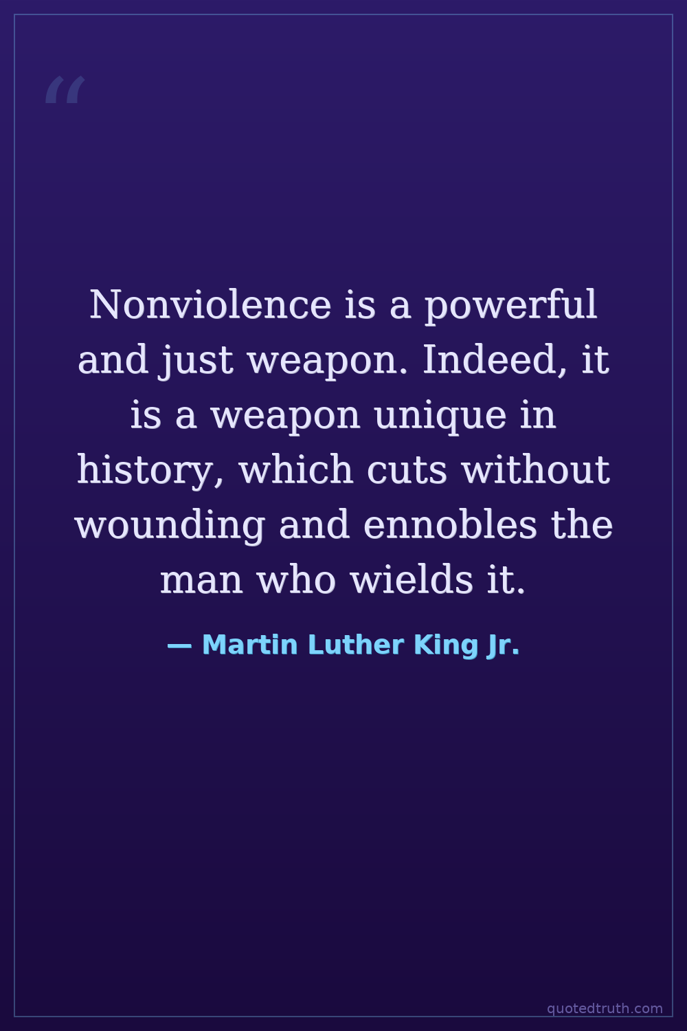 Nonviolence is a powerful and just weapon. Indeed, it is a weapon unique in history, which cuts without wounding and ennobles the man who wields it.