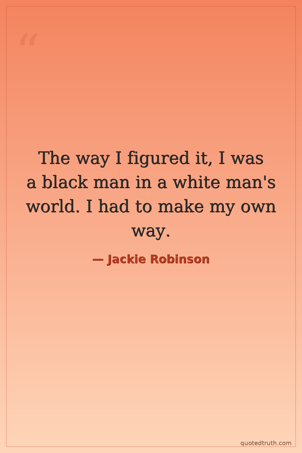 The way I figured it, I was a black man in a white man's world. I had to make my own way.