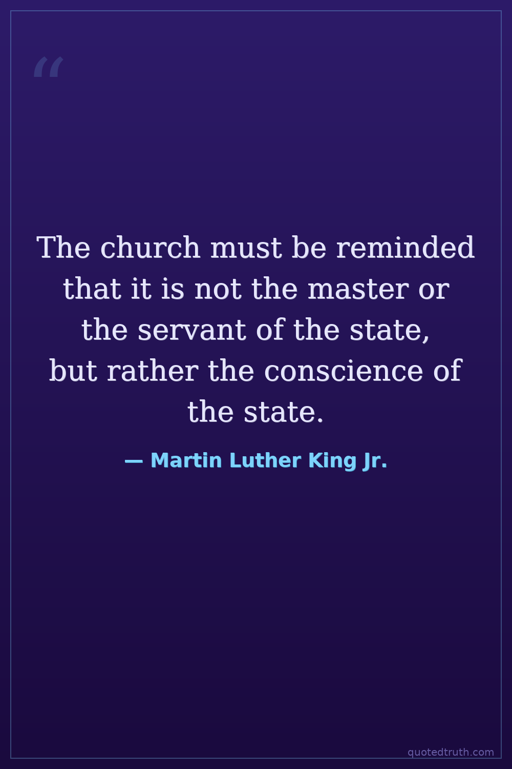 The church must be reminded that it is not the master or the servant of the state, but rather the conscience of the state.