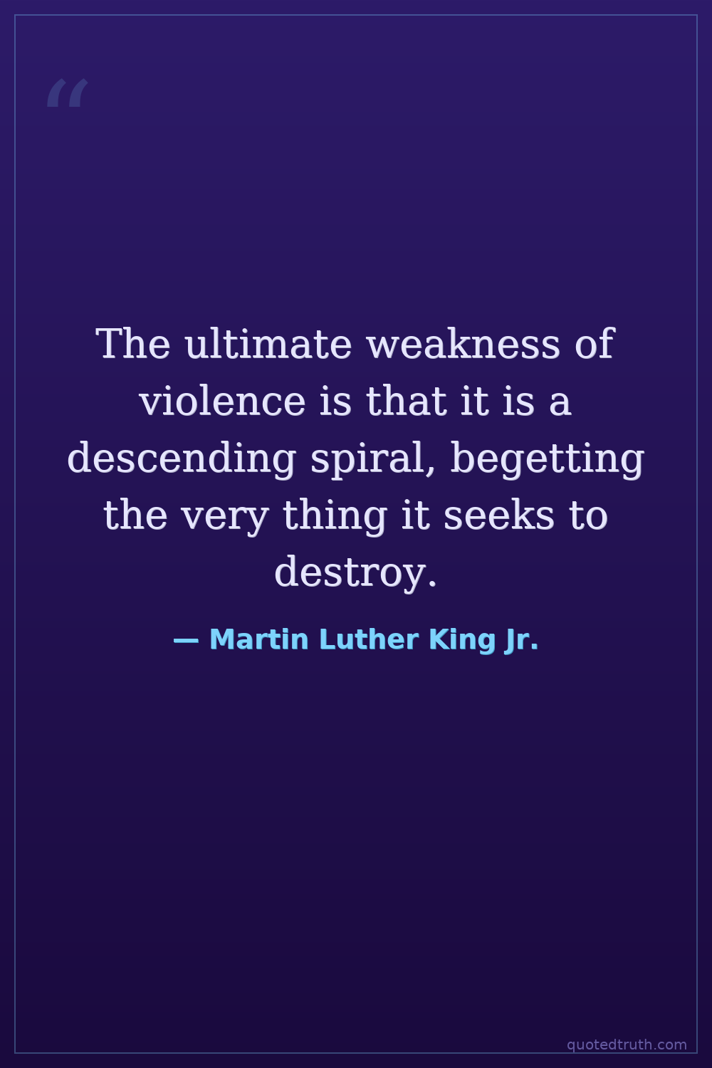 The ultimate weakness of violence is that it is a descending spiral, begetting the very thing it seeks to destroy.