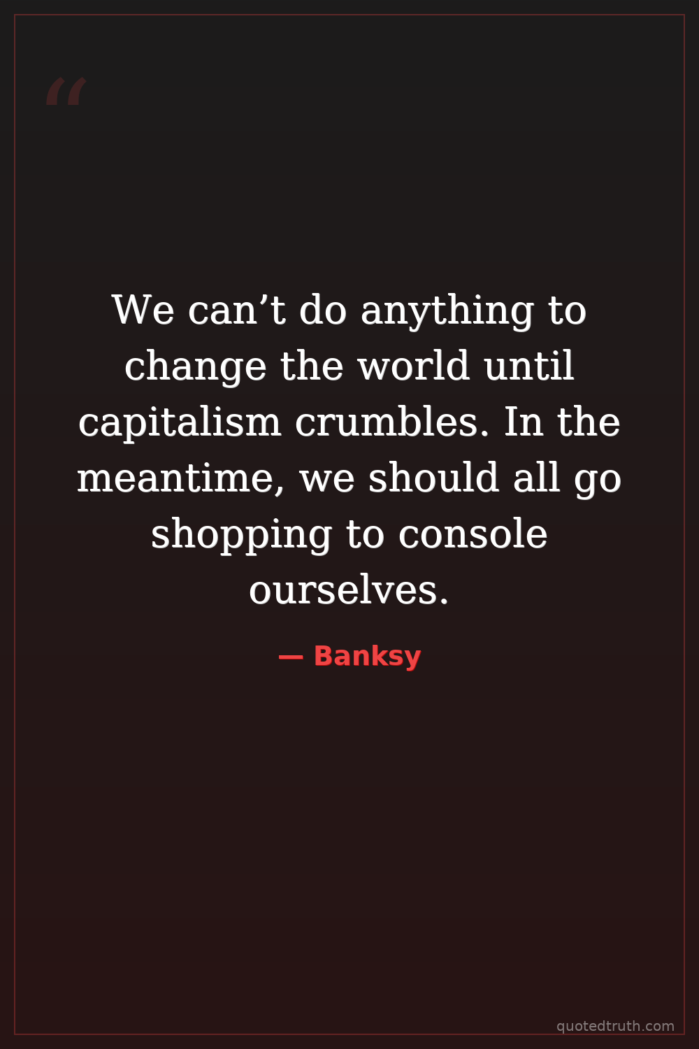 We can’t do anything to change the world until capitalism crumbles. In the meantime, we should all go shopping to console ourselves.