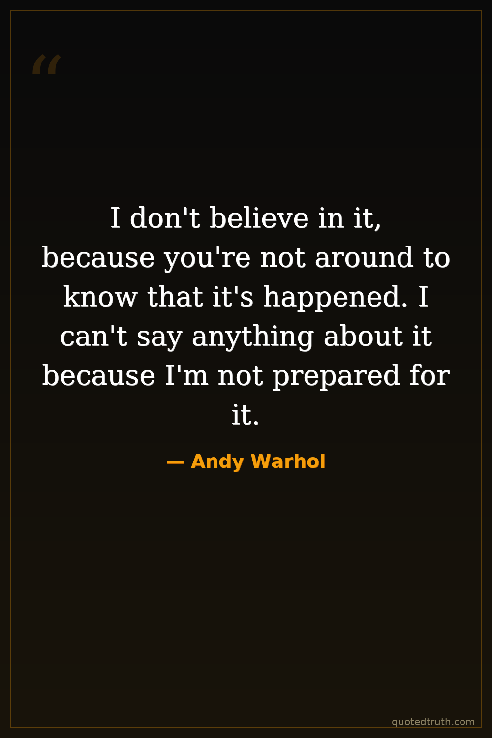 I don't believe in it, because you're not around to know that it's happened. I can't say anything about it because I'm not prepared for it.