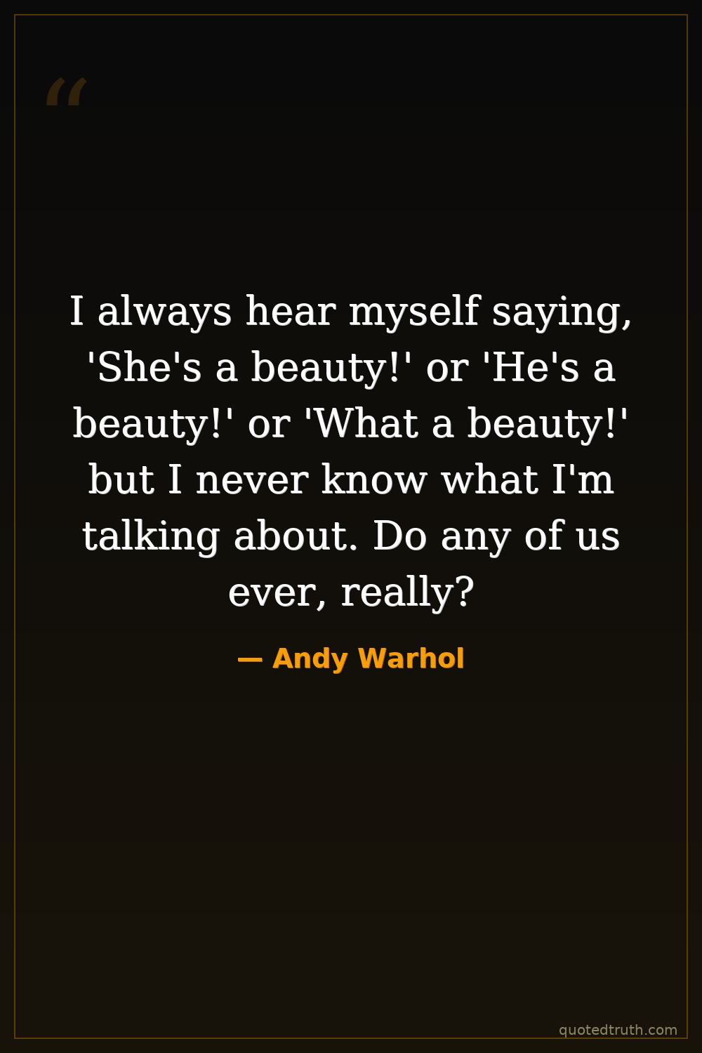 I always hear myself saying, 'She's a beauty!' or 'He's a beauty!' or 'What a beauty!' but I never know what I'm talking about. Do any of us ever, really?
