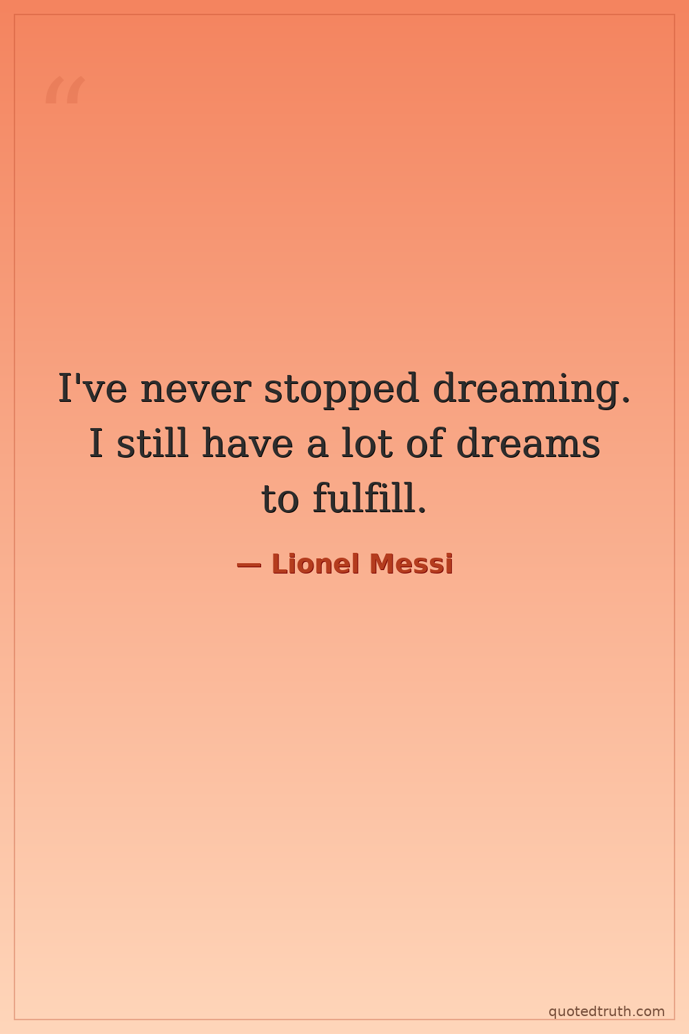 I've never stopped dreaming. I still have a lot of dreams to fulfill.
