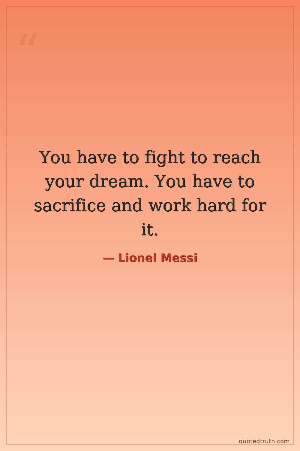 You have to fight to reach your dream. You have to sacrifice and work hard for it.