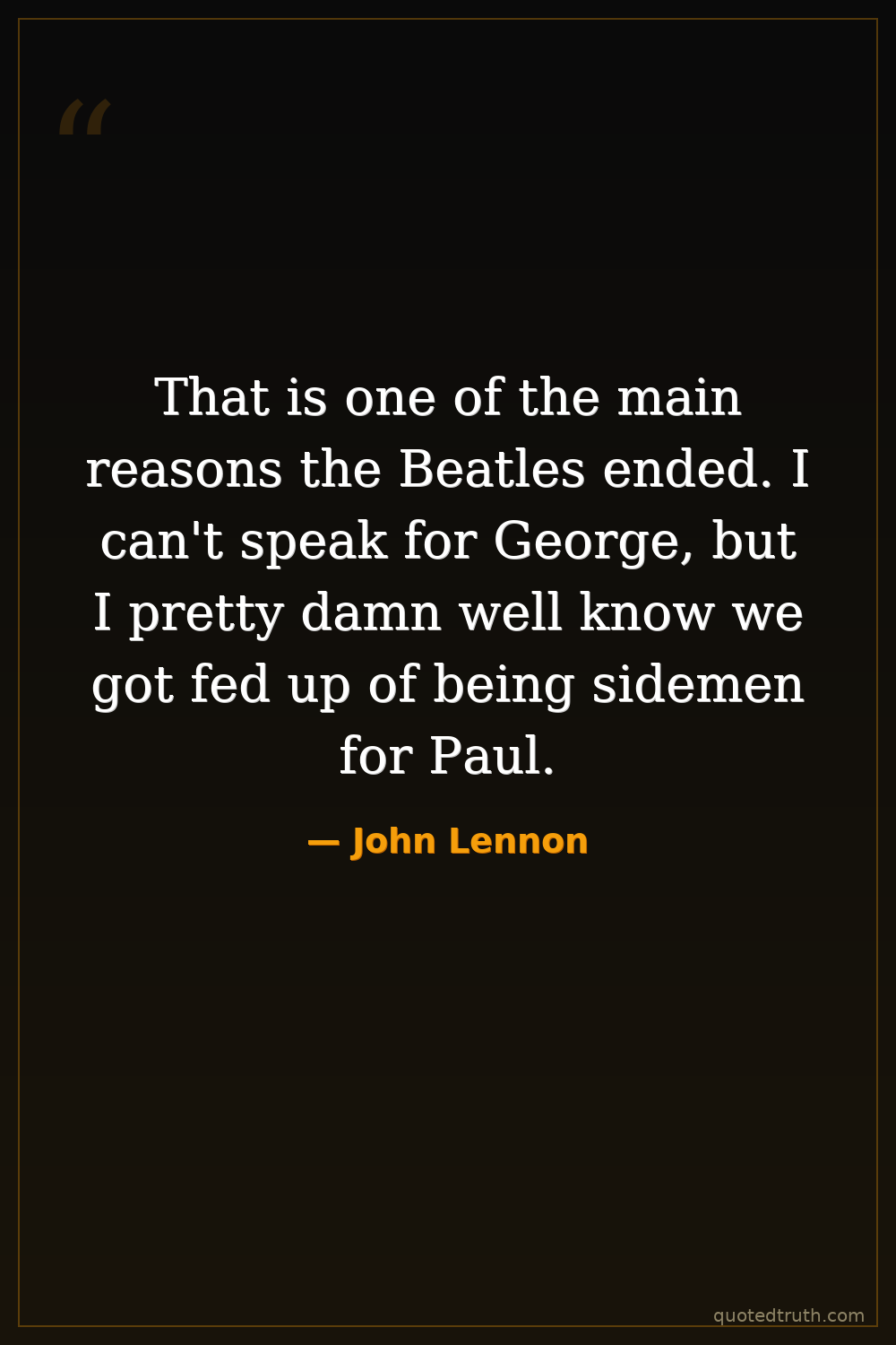 That is one of the main reasons the Beatles ended. I can't speak for George, but I pretty damn well know we got fed up of being sidemen for Paul.