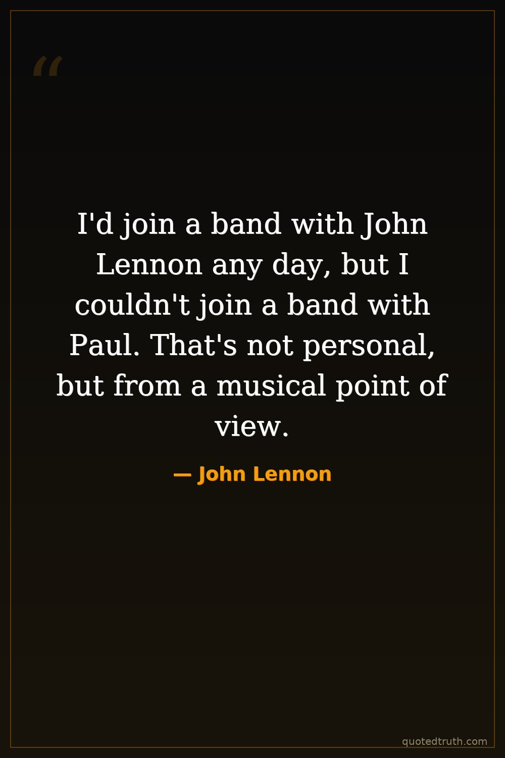I'd join a band with John Lennon any day, but I couldn't join a band with Paul. That's not personal, but from a musical point of view.