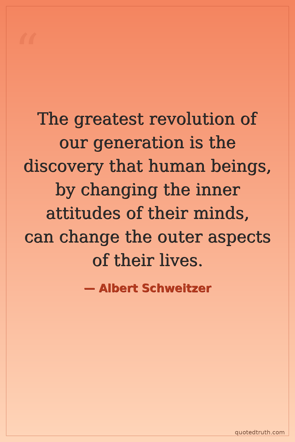 The greatest revolution of our generation is the discovery that human beings, by changing the inner attitudes of their minds, can change the outer aspects of their lives.
