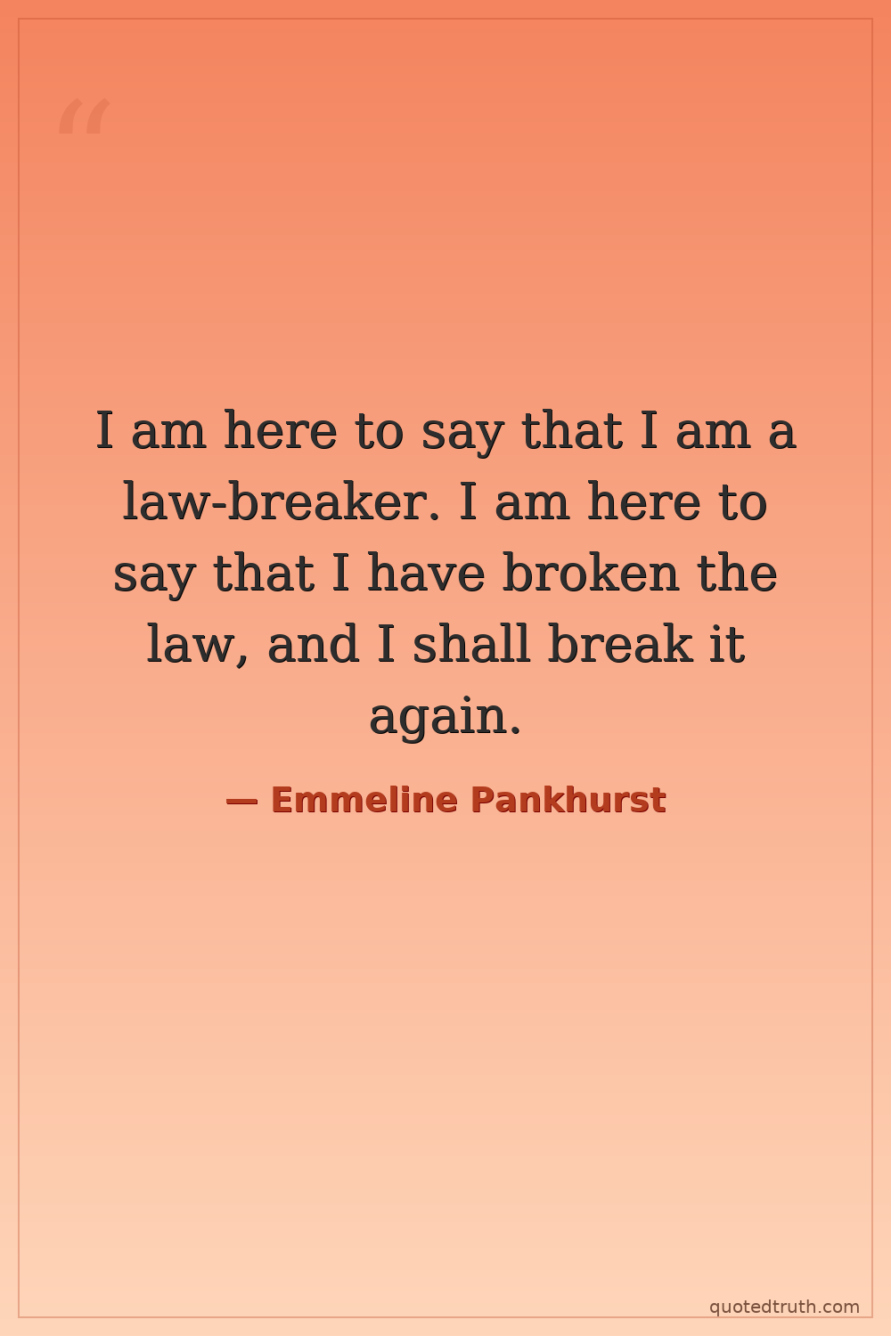 I am here to say that I am a law-breaker. I am here to say that I have broken the law, and I shall break it again.