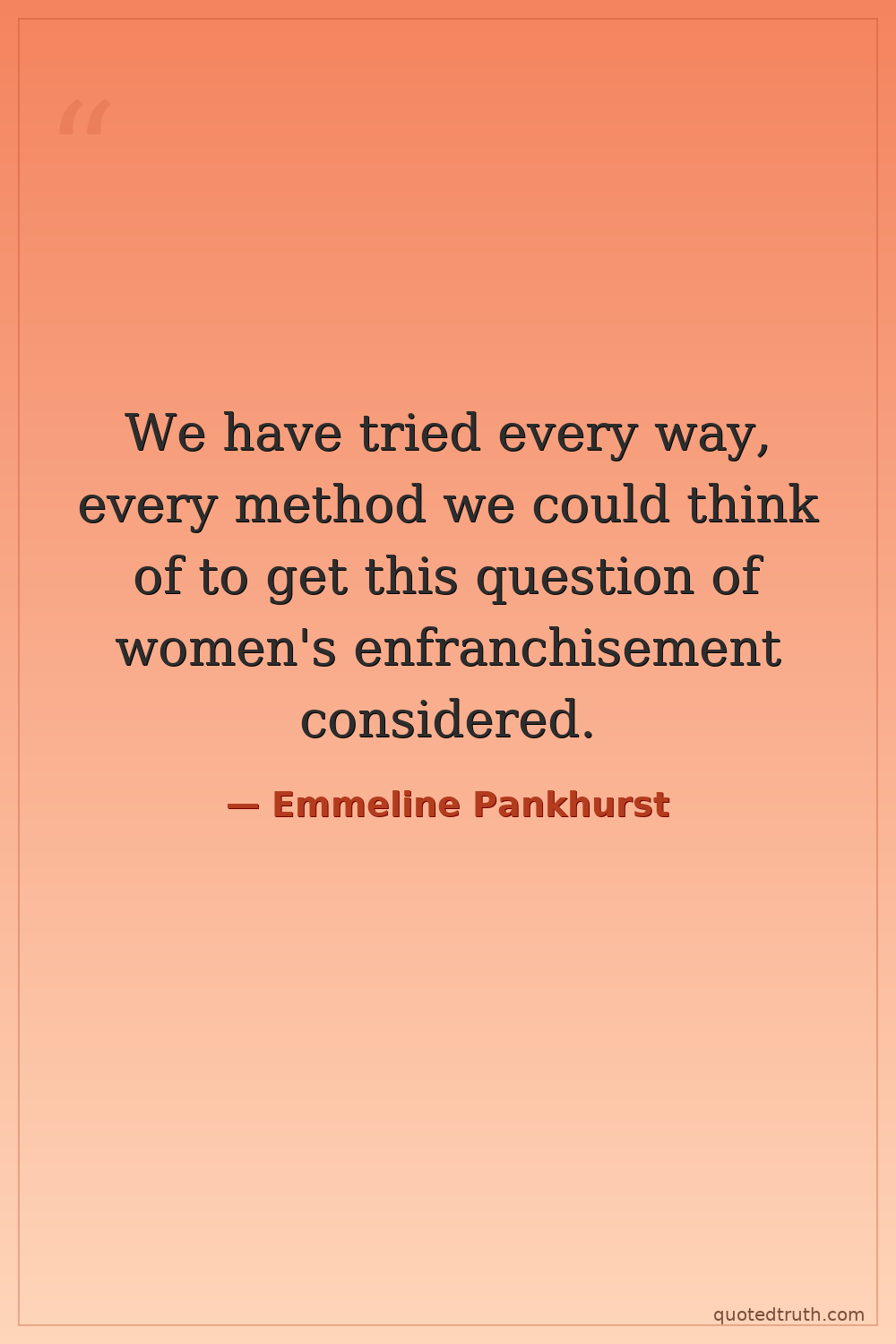 We have tried every way, every method we could think of to get this question of women's enfranchisement considered.