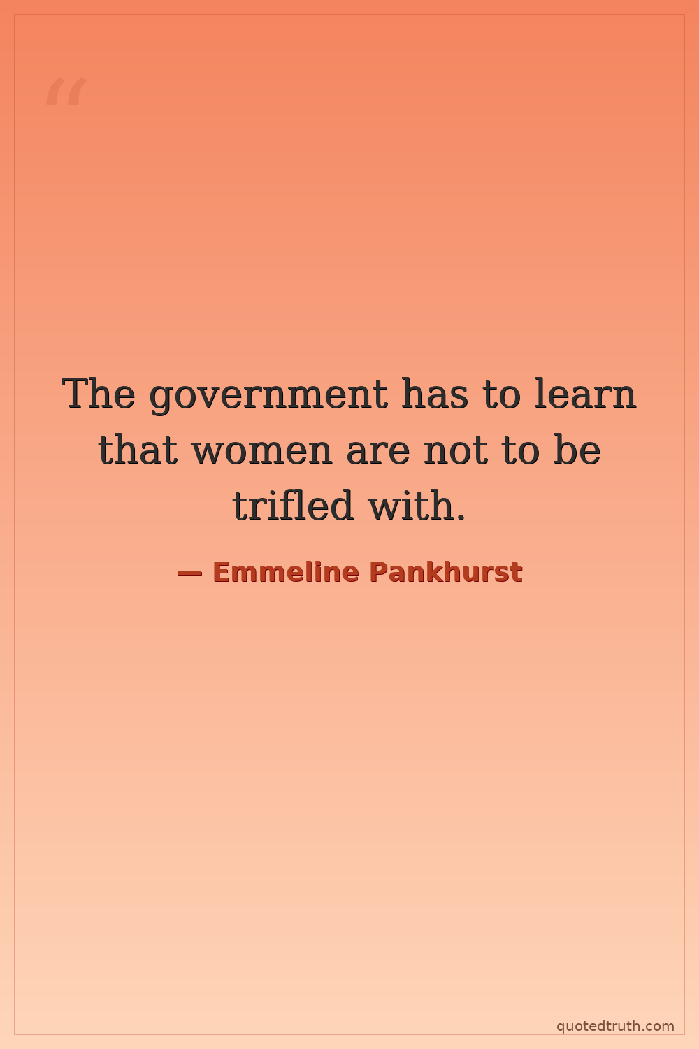 Humorous"The condition of women is such that it is their duty to rebel, to stand in the way of the government, to break its laws, if you like."