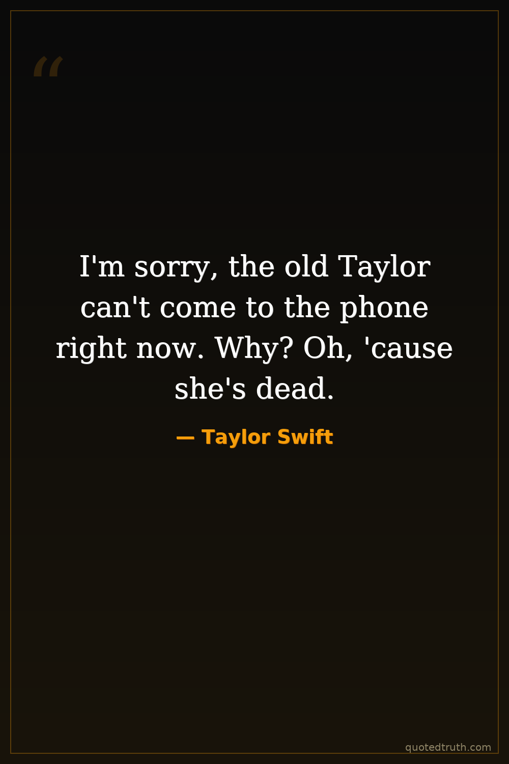 I'm sorry, the old Taylor can't come to the phone right now. Why? Oh, 'cause she's dead.