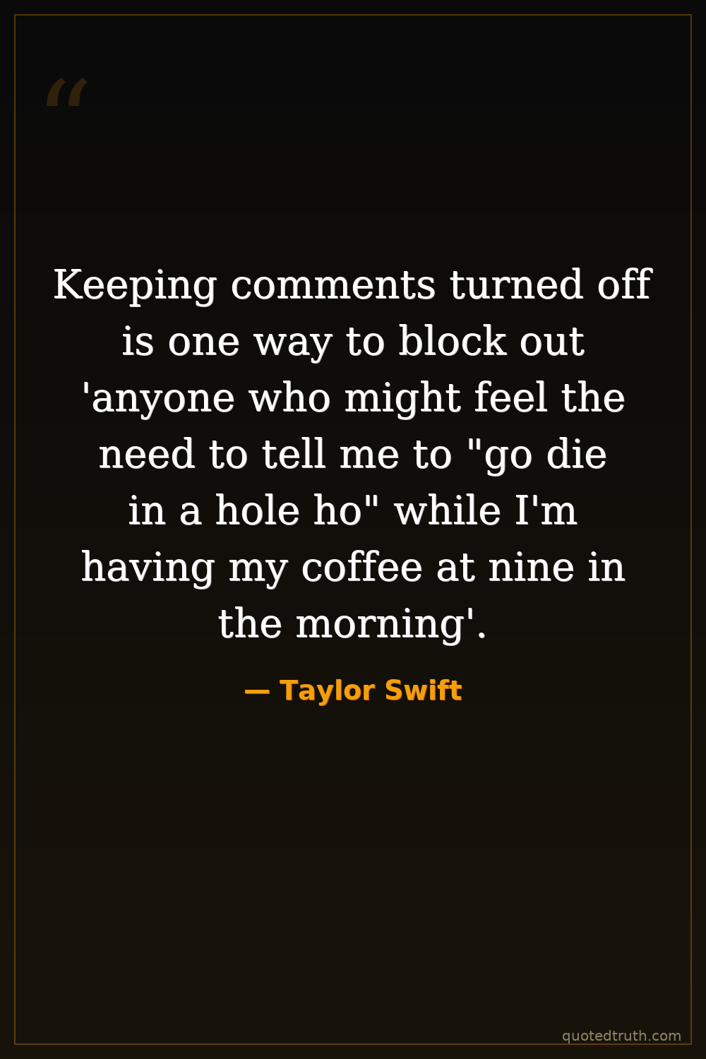 Keeping comments turned off is one way to block out 'anyone who might feel the need to tell me to "go die in a hole ho" while I'm having my coffee at nine in the morning'.