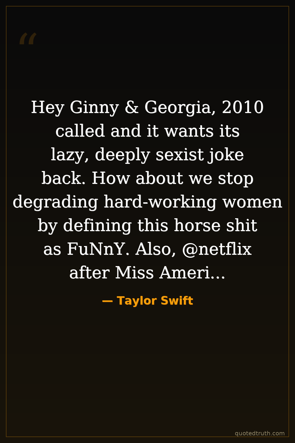 Hey Ginny & Georgia, 2010 called and it wants its lazy, deeply sexist joke back. How about we stop degrading hard-working women by defining this horse shit as FuNnY. Also, @netflix after Miss Americana this outfit doesn't look cute on you. Happy Women's History Month I guess.