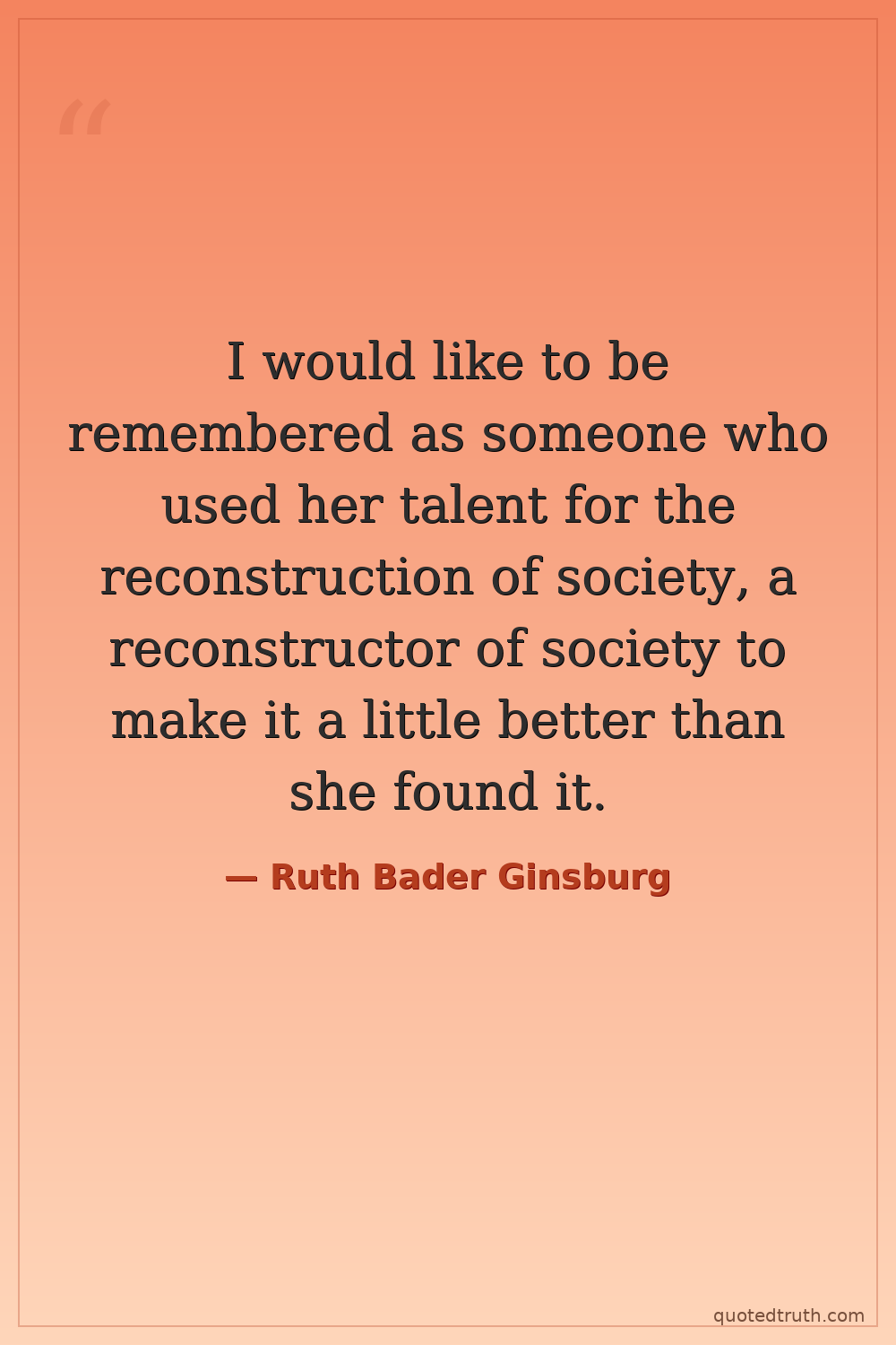 I would like to be remembered as someone who used her talent for the reconstruction of society, a reconstructor of society to make it a little better than she found it.