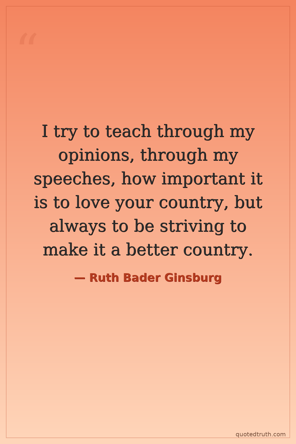 I try to teach through my opinions, through my speeches, how important it is to love your country, but always to be striving to make it a better country.