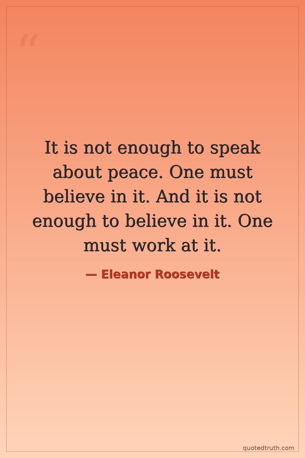 It is not enough to speak about peace. One must believe in it. And it is not enough to believe in it. One must work at it.