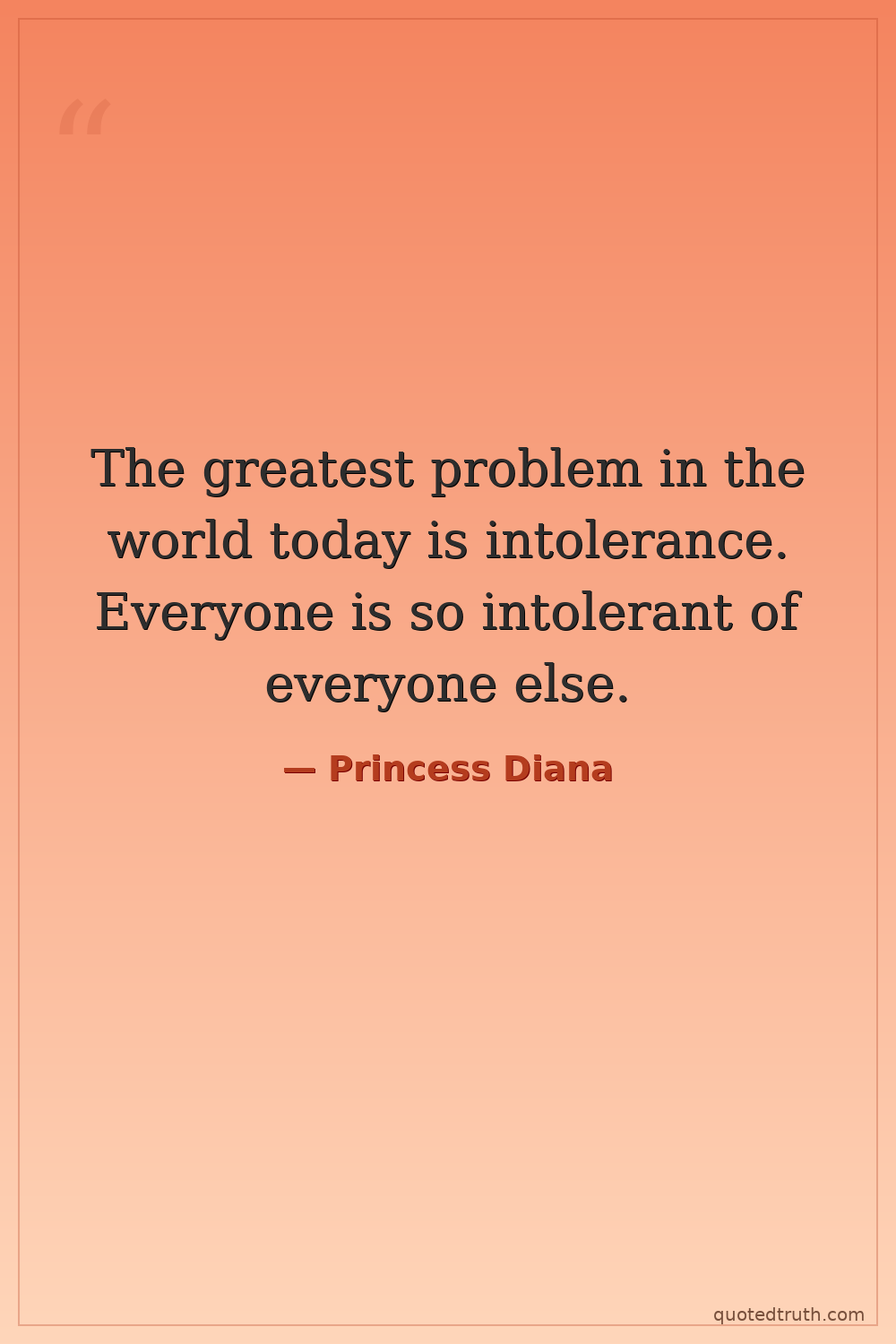 The greatest problem in the world today is intolerance. Everyone is so intolerant of everyone else.