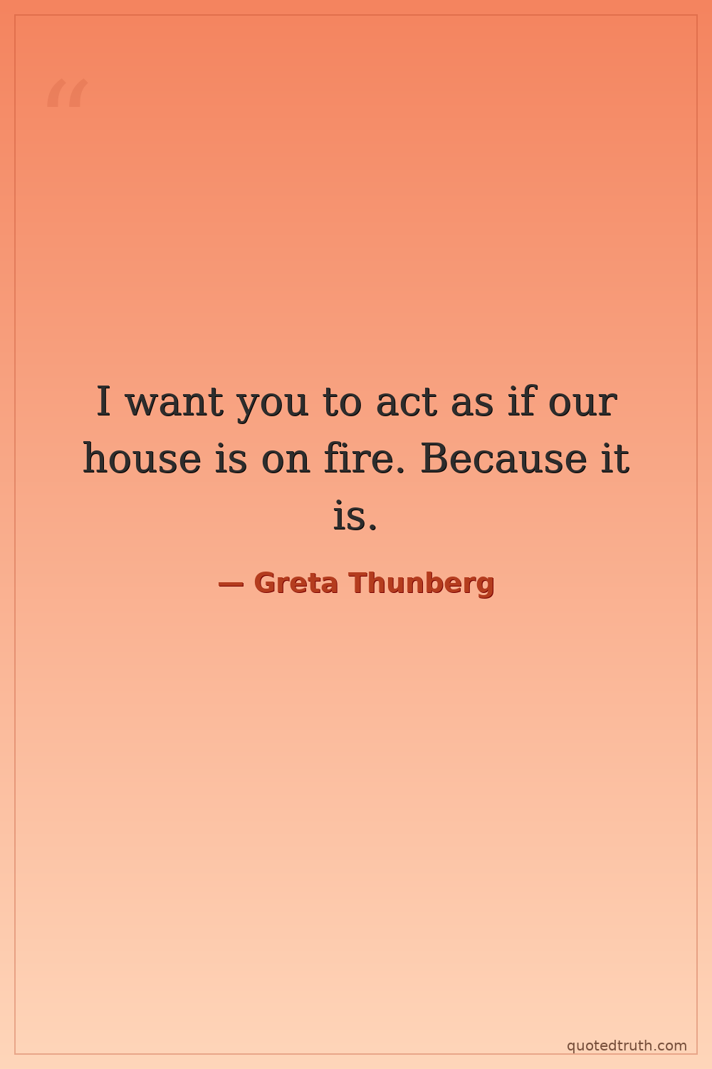 Shocking"Adults keep saying, 'We owe it to the young people to give them hope.' But I don't want your hope. I don't want you to be hopeful. I want you to panic."