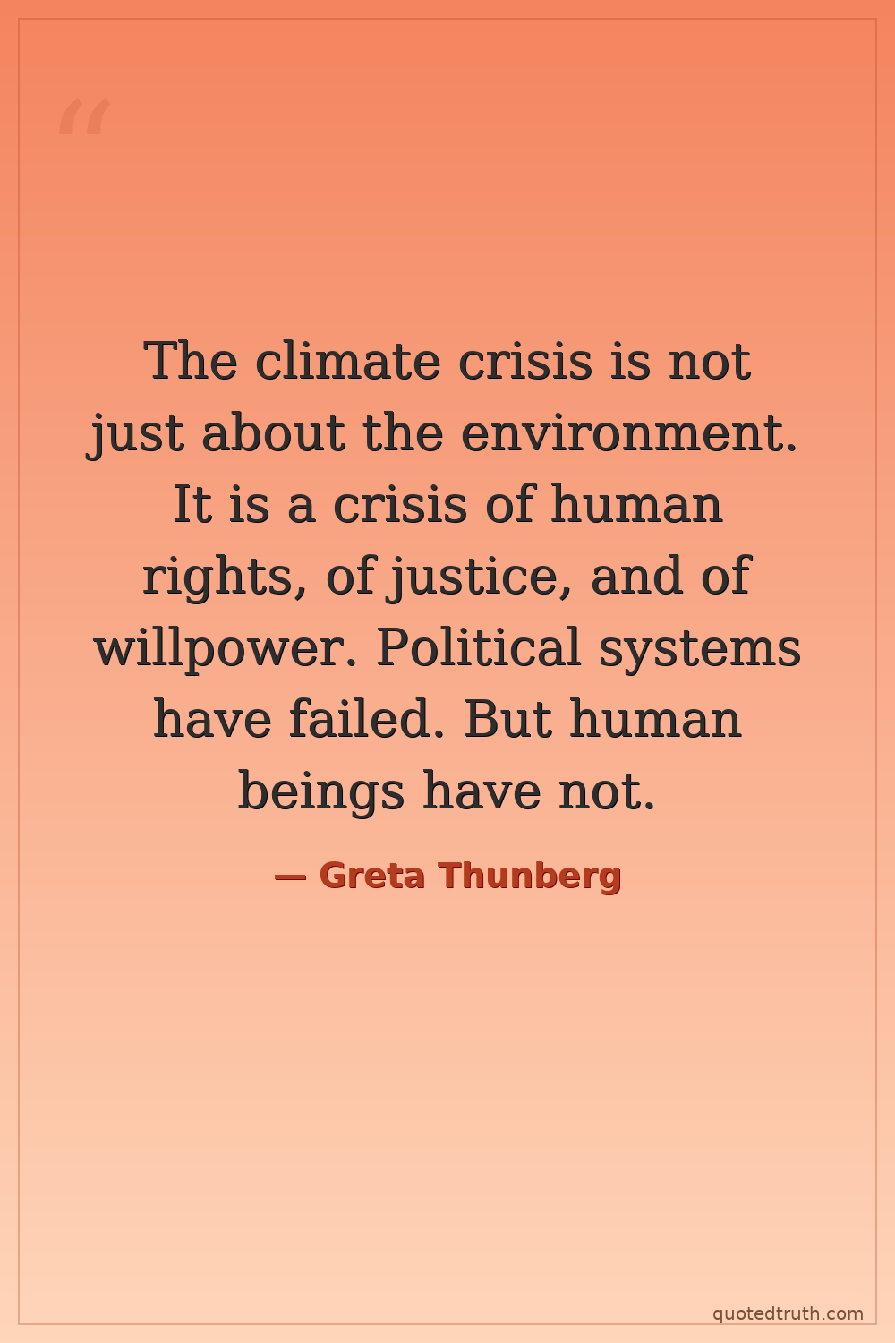 The climate crisis is not just about the environment. It is a crisis of human rights, of justice, and of willpower. Political systems have failed. But human beings have not.