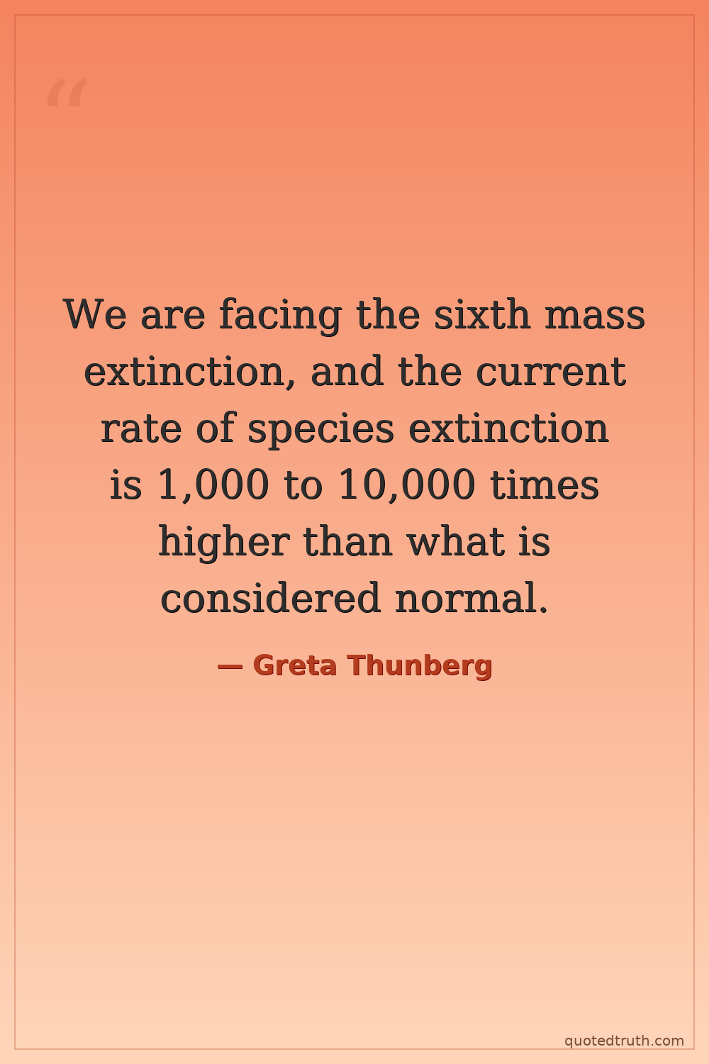 We are facing the sixth mass extinction, and the current rate of species extinction is 1,000 to 10,000 times higher than what is considered normal.