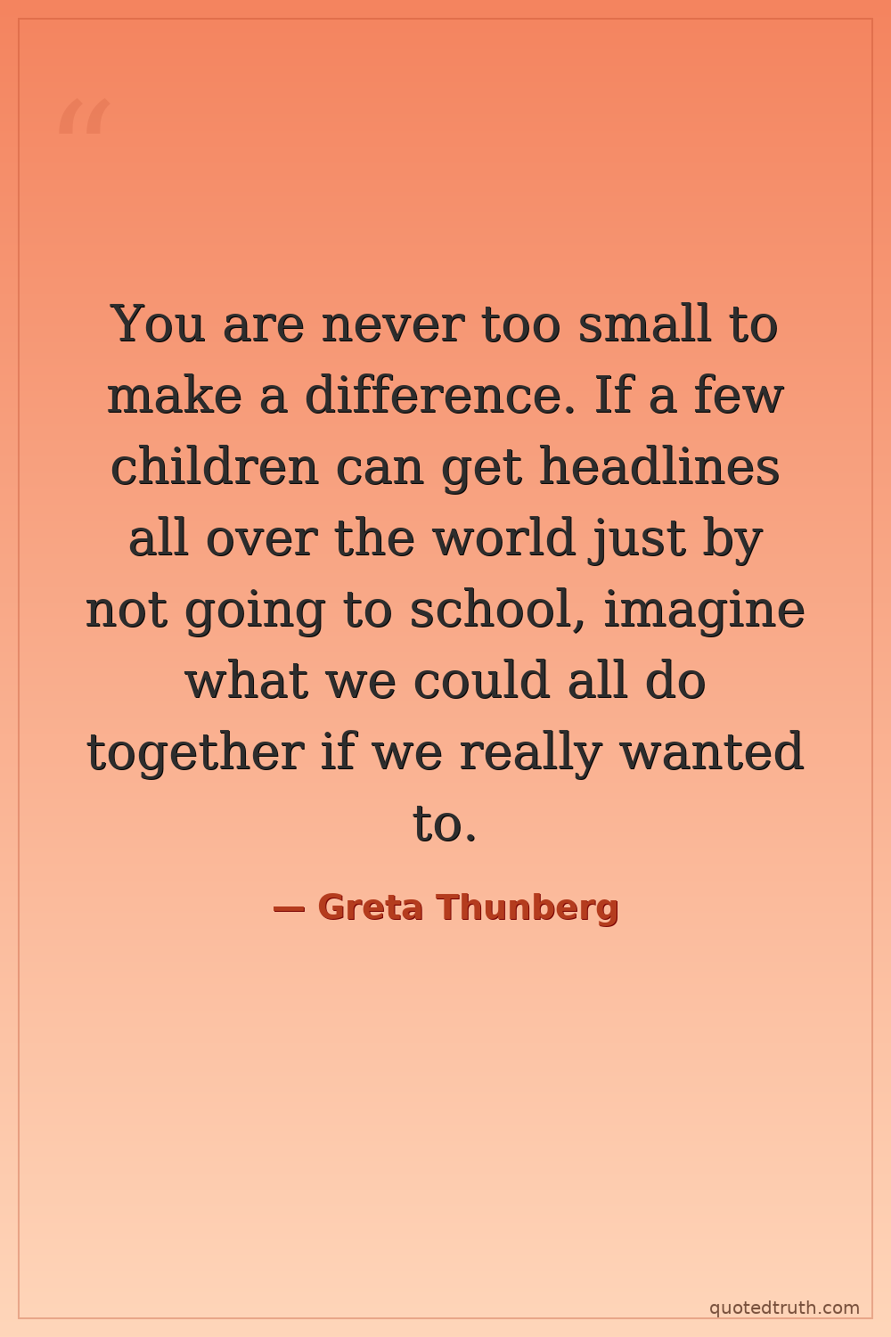 You are never too small to make a difference. If a few children can get headlines all over the world just by not going to school, imagine what we could all do together if we really wanted to.