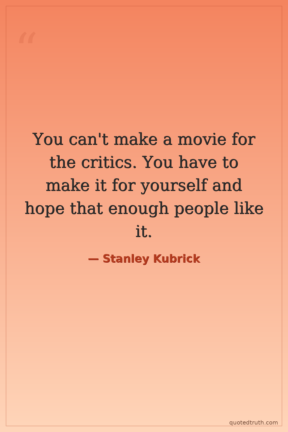 You can't make a movie for the critics. You have to make it for yourself and hope that enough people like it.