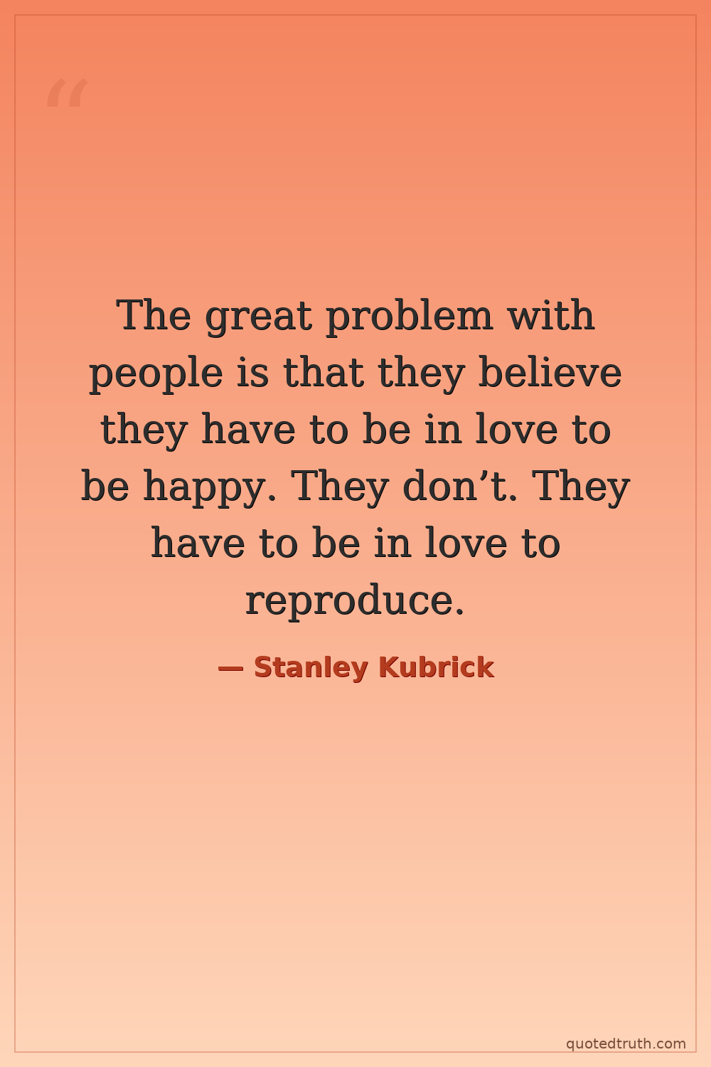 The great problem with people is that they believe they have to be in love to be happy. They don’t. They have to be in love to reproduce.