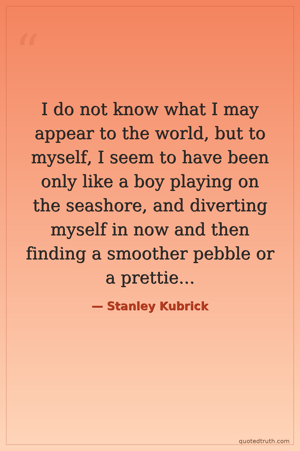 I do not know what I may appear to the world, but to myself, I seem to have been only like a boy playing on the seashore, and diverting myself in now and then finding a smoother pebble or a prettier shell than ordinary, whilst the great ocean of truth lay all undiscovered before me.
