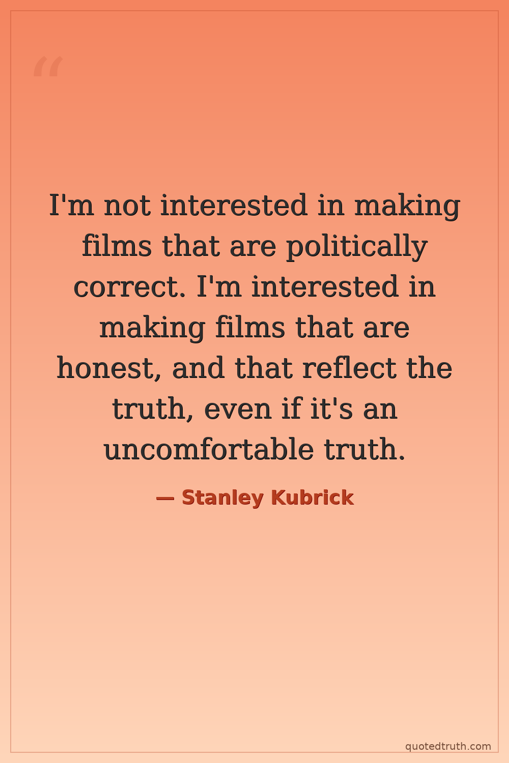 I'm not interested in making films that are politically correct. I'm interested in making films that are honest, and that reflect the truth, even if it's an uncomfortable truth.