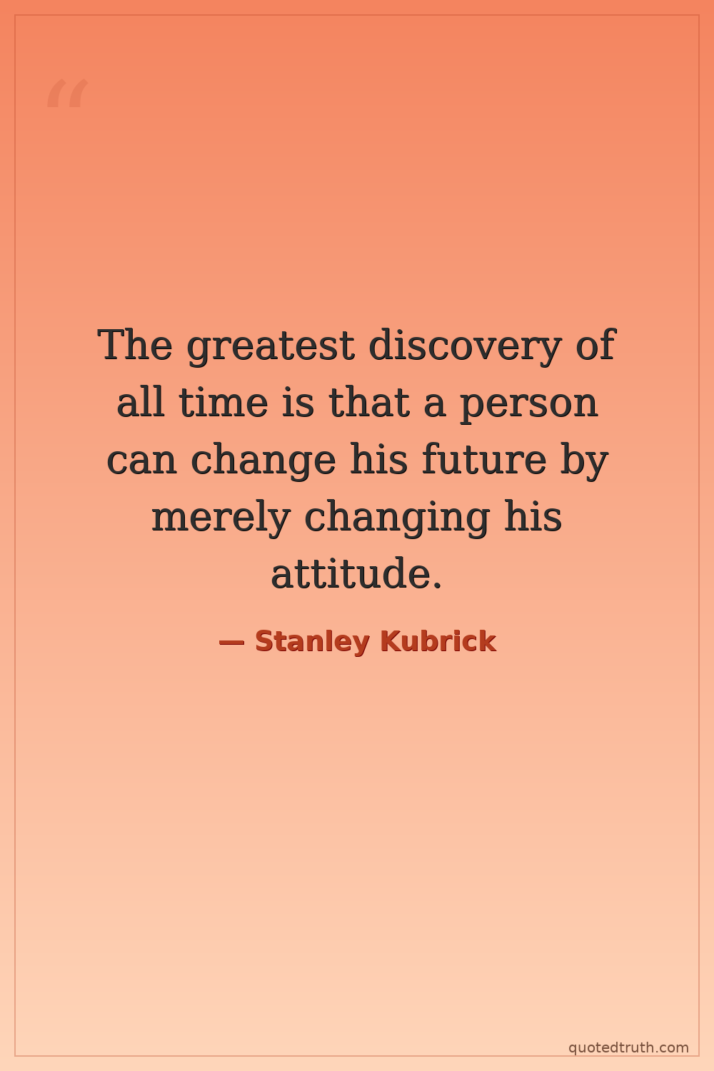 The greatest discovery of all time is that a person can change his future by merely changing his attitude.