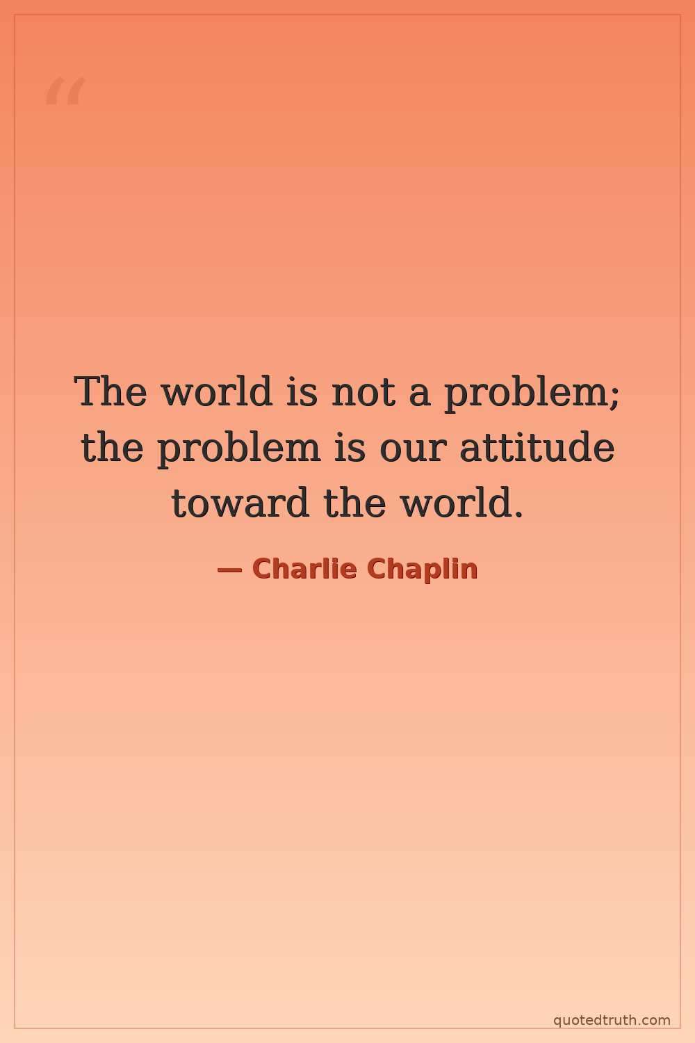 The world is not a problem; the problem is our attitude toward the world.