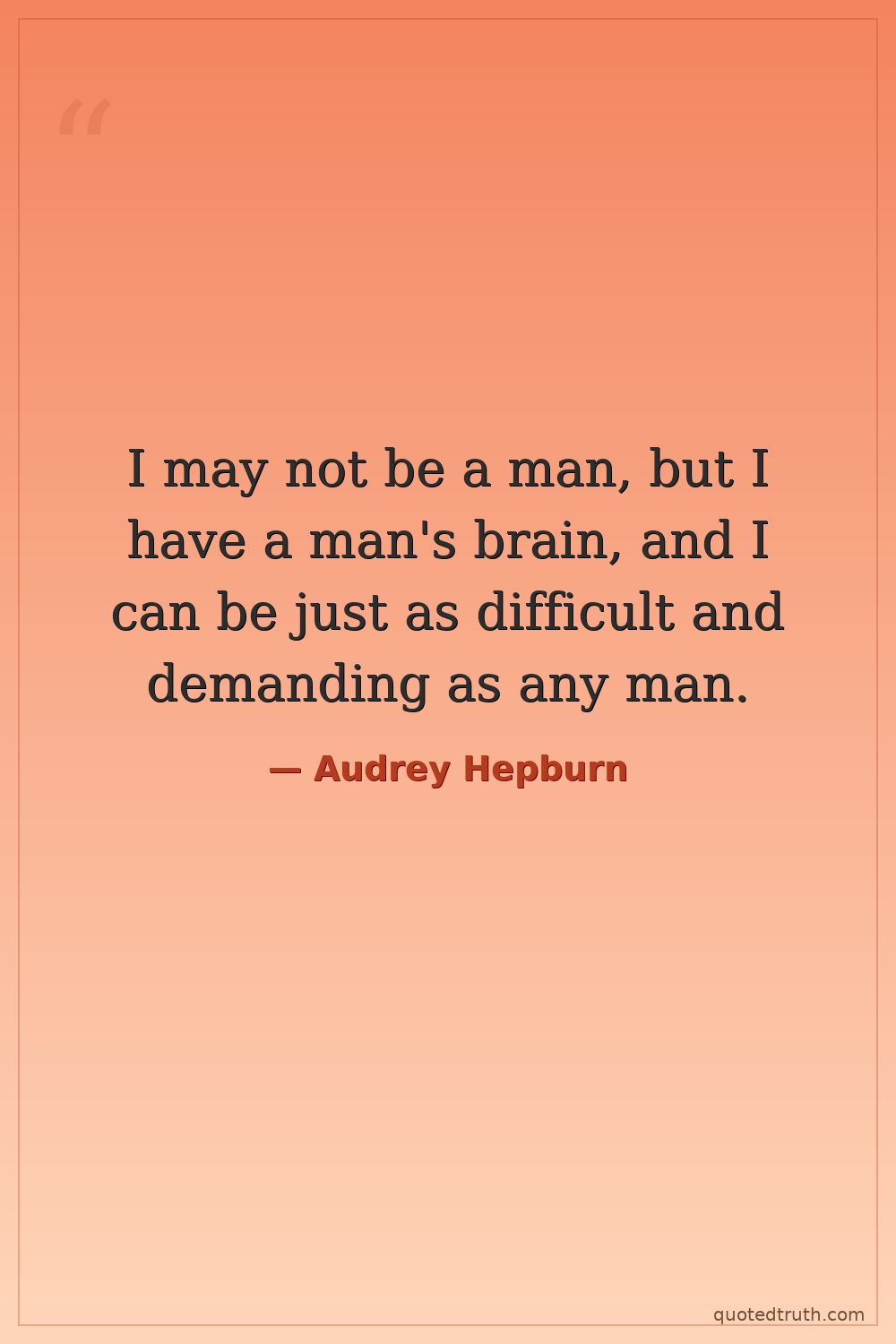 I may not be a man, but I have a man's brain, and I can be just as difficult and demanding as any man.