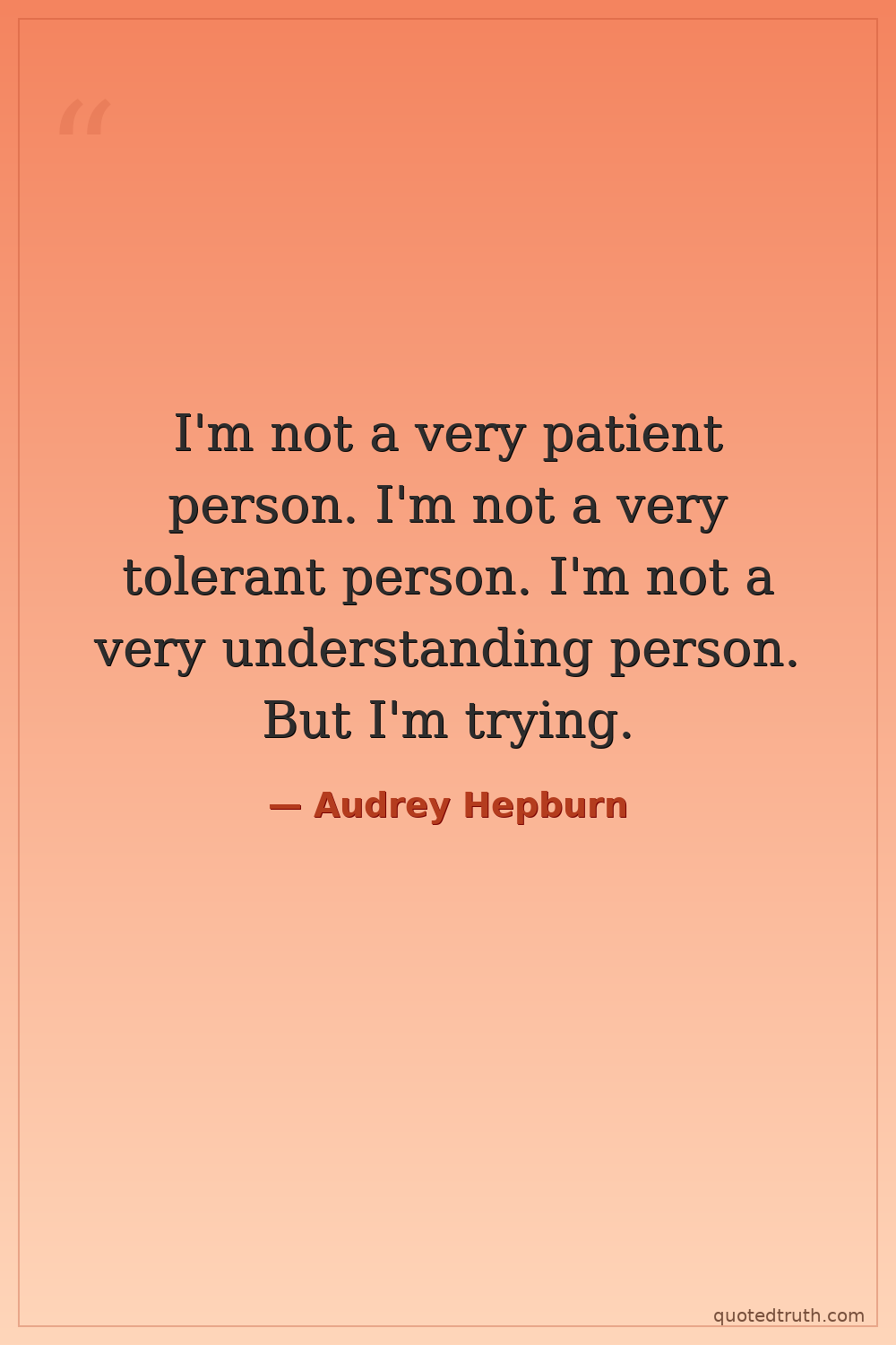 I'm not a very patient person. I'm not a very tolerant person. I'm not a very understanding person. But I'm trying.