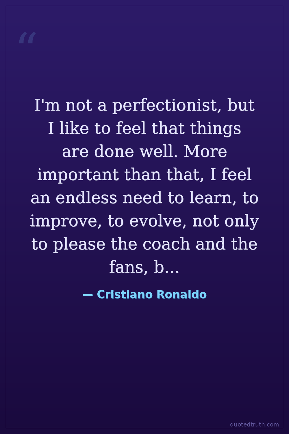 I'm not a perfectionist, but I like to feel that things are done well. More important than that, I feel an endless need to learn, to improve, to evolve, not only to please the coach and the fans, but also to feel satisfied with myself.