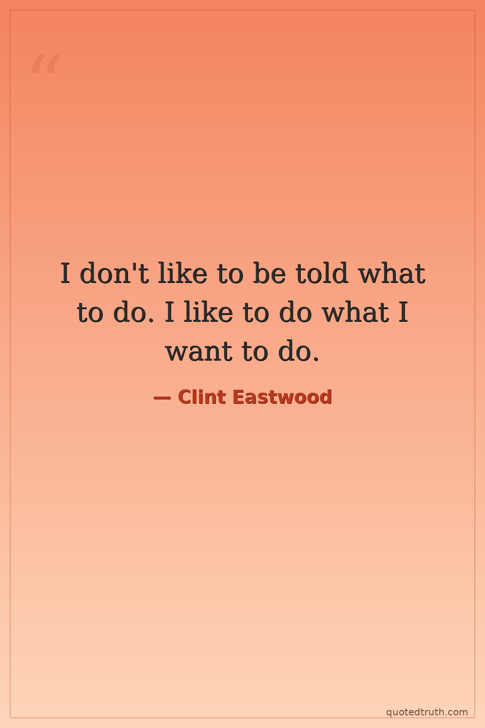 I don't like to be told what to do. I like to do what I want to do.