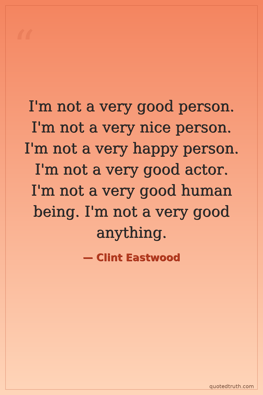 I'm not a very good person. I'm not a very nice person. I'm not a very happy person. I'm not a very good actor. I'm not a very good human being. I'm not a very good anything.