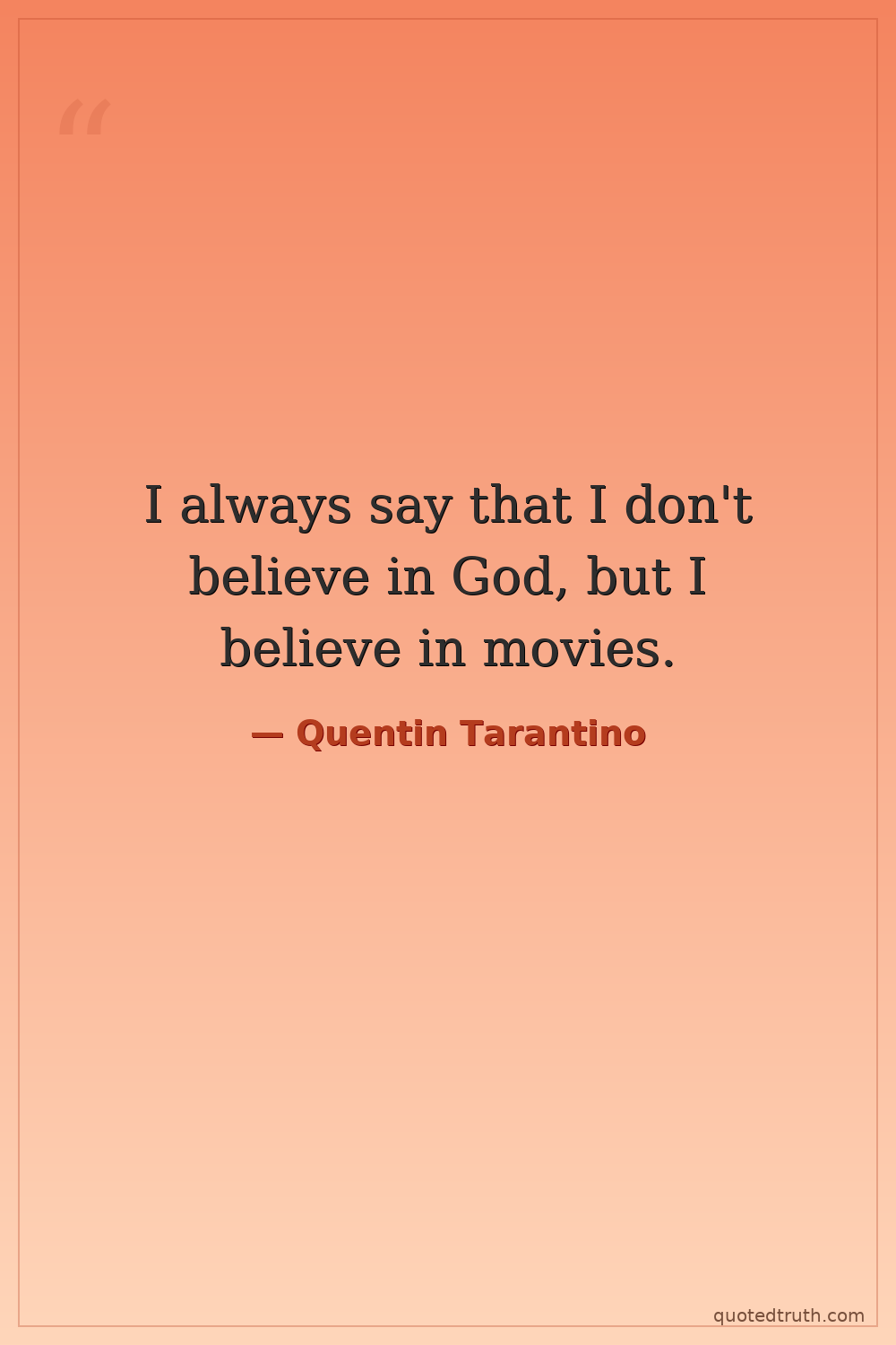 I always say that I don't believe in God, but I believe in movies.
