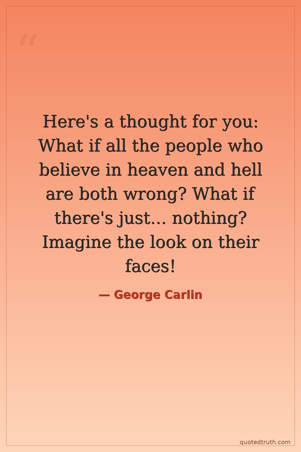 Here's a thought for you: What if all the people who believe in heaven and hell are both wrong? What if there's just... nothing? Imagine the look on their faces!